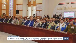 وأضاف” عندما نستعيد تاريخنا وننظر إلى حضارتنا، نرى أنه يتوجب علينا وتقع علينا المسؤولية أن نصنع حاضرا يتناغم وينسجم مع تاريخ وحضارة شعبنا، ومع قول رسولنا صلوات لله عليه وعلى آله “الإيمان يمان والحكمة يمانية” وهنا يأتي دور المدونة السلوكية”.