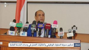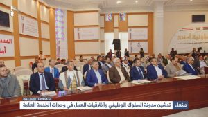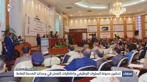 وأشار إلى أن المدونة تعد بداية الإصلاح، لأن الإصلاح يبدأ من النفوس والواقع، وإصلاح العمل، يبدأ بإصلاح النفوس.. وقال” من هنا تأتي الأهمية القصوى لإنجاز مدونة السلوك الوظيفي، لأنها تأتي في سياق حرصنا على إصلاح أنفسنا جميعاً، لتدخل بعد ذلك ضمن الخطط حسب القرار”.