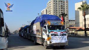 انطلقت صباح اليوم قافلة اغاثية من الجالية اليمنية في سورية إلى محافظة اللاذقية دعماً للمتضررين من الزلزال المدمر تحت شعار “من اليمن إلى الشام كلنا مقاومة”.