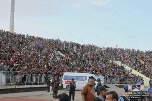 هذه من النعم العظيمة أن نجد أبناء الشعب اليمني سواءً كانوا شعباً رجالاً رسميين رياضيين كيفما كانت فئاتهم في هذا الشعب، هم مع ذلك سواءً في احتفالاتهم او مآسيهم لن ينسوا فلسطين، لن ينسوا ما يعمله اليهود، ما يعمله العدو الإسرائيلي ضد أبنائهم واخوانهم هناك. فلذلك نقول للجميع، نبارك لكم هذا الاحتفال وهذه الاحتفائية العظيمة. وهذا شيئ قليل في حقكم كأبطال للجمهورية اليمنية.