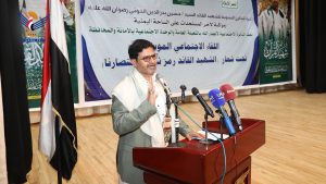 وأردف قائلاً “الشعارات تم تحويلها إلى فعل بما في ذلك الشعار الذي رفعه قائد الثورة منذ اليوم الأول للعدوان الإسرائيلي على غزة وهو “لستم وحدكم” الذي ترجمه أبناء الشعب اليمني صغاراً وكباراً في واقع حياتهم اليومية سيما وهم يرون المجازر التي يتعرض لها أشقائهم في قطاع غزة”.