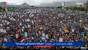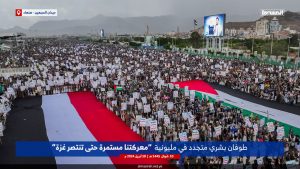 طوفان بشري متجدد في #ميدان_السبعين بالعاصمة #صنعاء في مليونية “معركتنا مستمرة حتى تنتصر غزة”