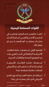 بيان القوات المسلحة اليمنية بشأن استهداف حاملة الطائرات الأمريكية “ابراهام لينكولن” في البحر العربي ومدمرتين أمريكيتين في البحر الأحمر 10-05-1446هـ 12-11-2024م