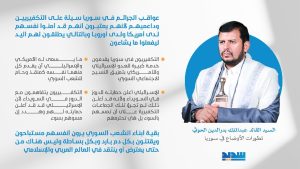 السيد القائد عبدالملك بدرالدين الحوثي ما ترتكبه الجماعات التكفيرية في سوريا من إجرام هو مدان ويجب أن يستنكره الجميع وأن يسعى كل من بقي له ضمير لوقف الجرائم