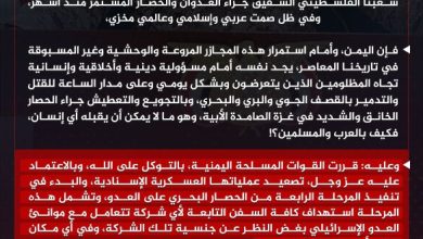 وأضاف الرئيس المشاط” عملياتنا المساندة لغزة لن تتوقف، مهما كان حجم التضحيات