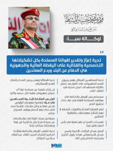 #الرئيس_المشاط: تحية إعزاز وتقدير لقواتنا المسلحة بكل تشكيلاتها التخصصية والقتالية على اليقظة العالية والجهوزية في الدفاع عن البلد وردع المعتدين*