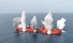 صور استهداف وإغراق سفينة “ماجيك سيز” (MAGIC SEAS) تابعة لشركة اخترقت قرار حظر القوات المسلحة اليمنية بصنعاء في البحر الاحمر
